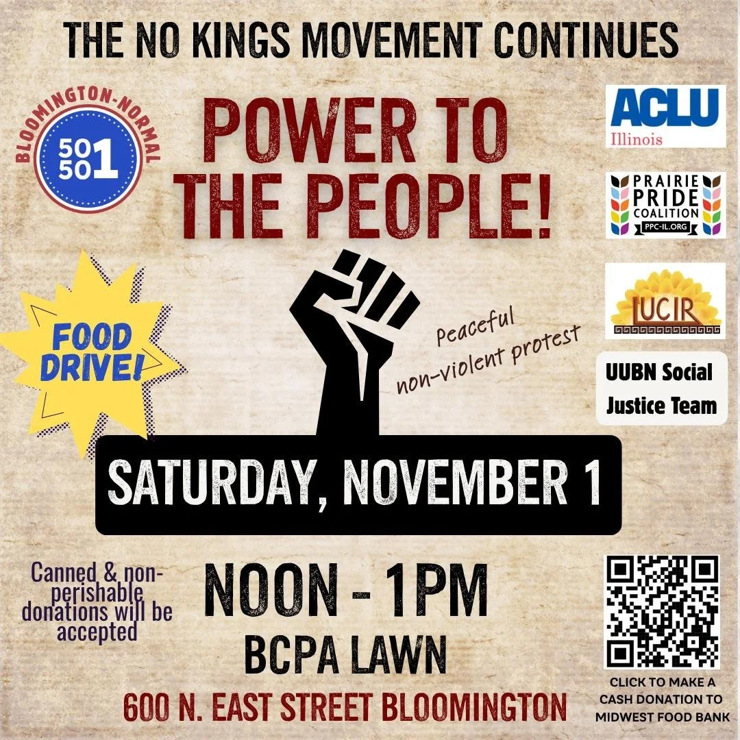 A part 2 follow-up will be held in person at UUBN hosted by Bloomington-Normal 50501 and The Immigration Project on December 1 at the same time. More info to come.
